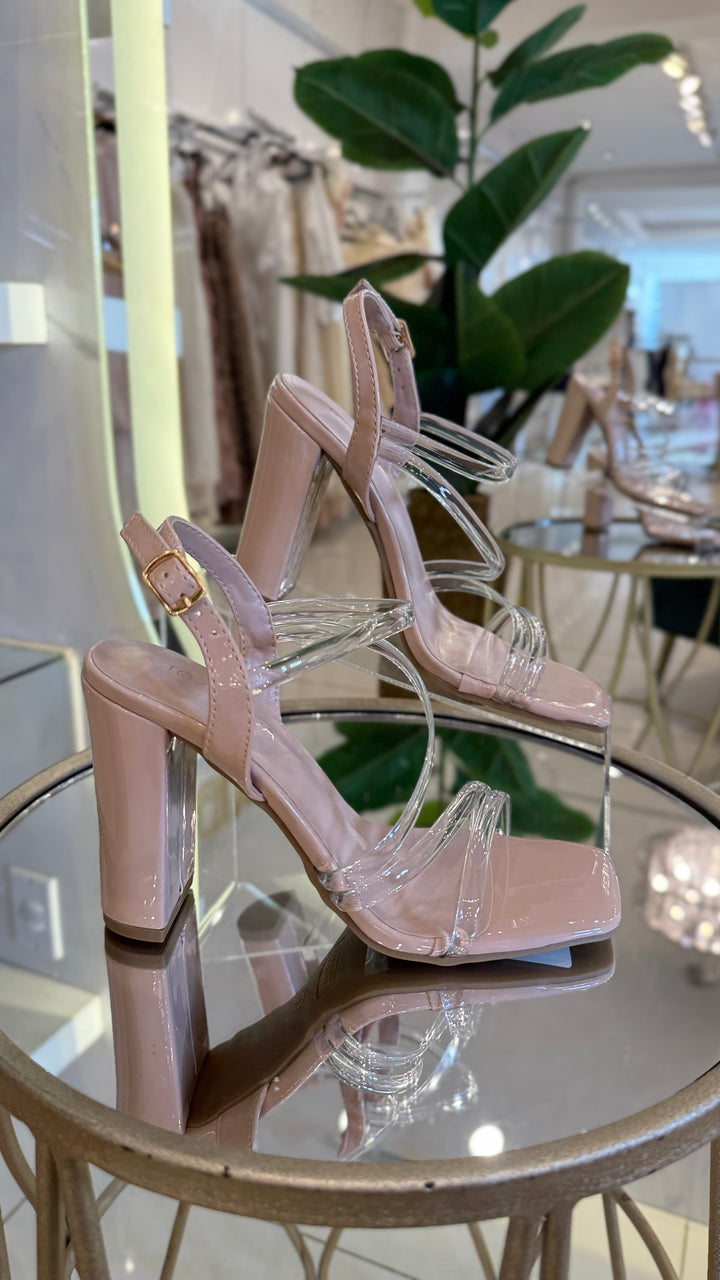 147 Zapatilla tiras nude- transparente